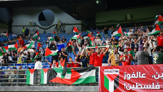 مشجعون لمنتخب فلسطين قبل لقاء ضد الكويت، 5 يونيو 2025 (فرانس برس)