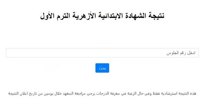 نتيجة الشهادة الابتدائية الأزهرية برقم الجلوس