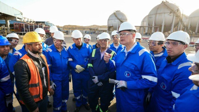 واطلع الوزير على مراحل العمل المختلفة بدءا من اختبار صلاحية الأسطوانة قبل التعبئة وتجهيزها بوسائل الأمان، والتأكد من الأوزان المعتمدة، ثم إعادة اختبارها بعد التعبئة لضمان سلامتها قبل التداول، كما تابع مجريات العمل مع العاملين بمظلات التعبئة، مؤكدا على الدعم الكامل لهم باعتبارهم الثروة الحقيقية وركيزة العملية الإنتاجية مهنئاً إياهم بالشهر الكريم.