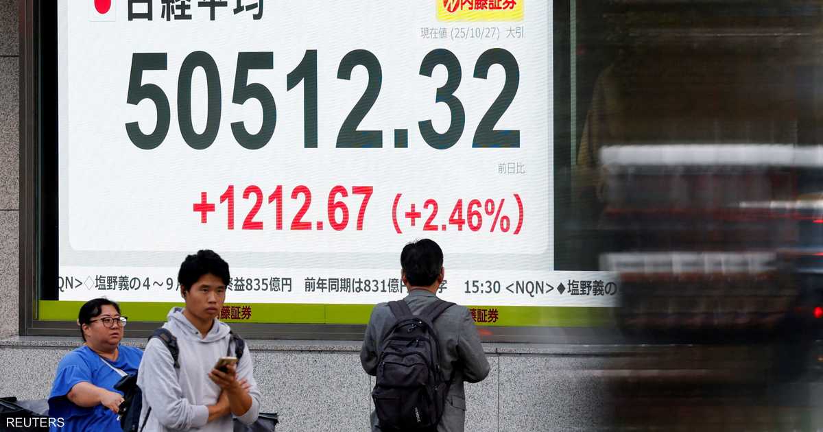 وارتفع مؤشر نيكاي 225 القياسي الياباني بنسبة 2.1 بالمئة ليصل إلى 50329 نقطة، مسجلا أعلى مستوياته على الإطلاق خلال جلسة التداول.