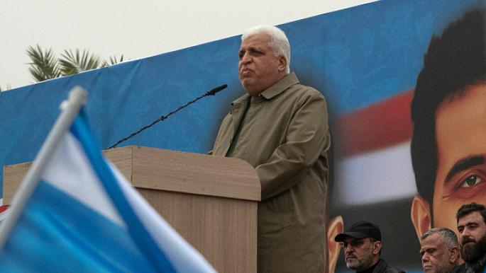 فالح الفياض خلال جنازة رمزية لقاسم سليماني في بغداد، 1 يناير 2022 (فرانس برس)